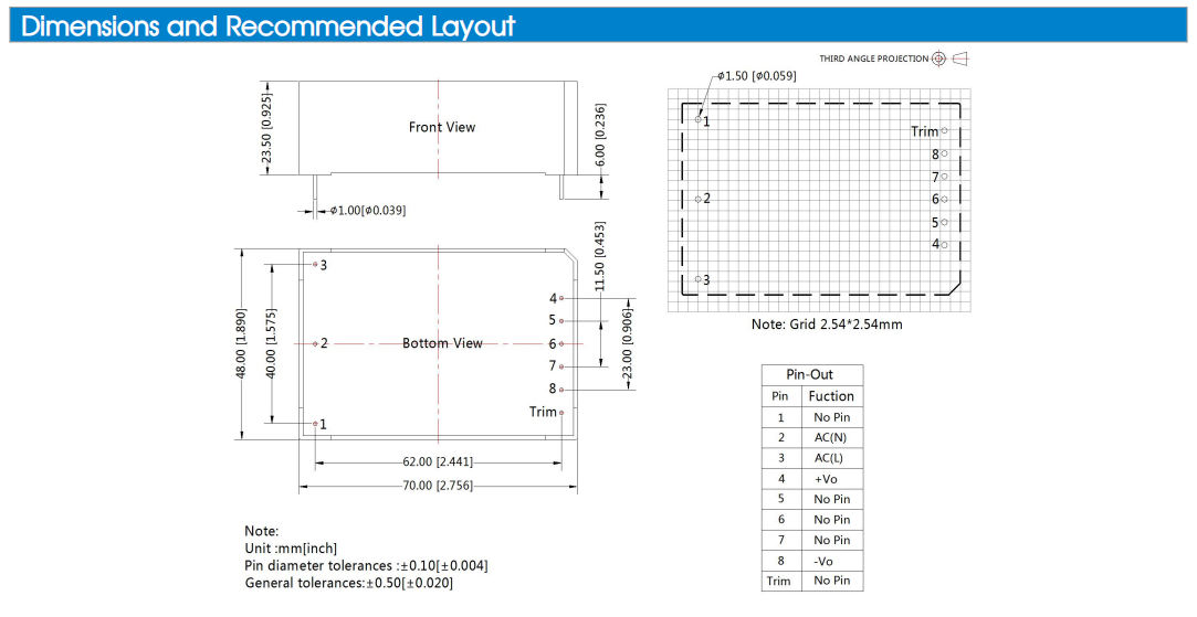 | Recommended External Input Fuse(Chassis mounting, DIN-Rail mounting package series include fuse) | 3. 15A/250V, slow fusing | ||||